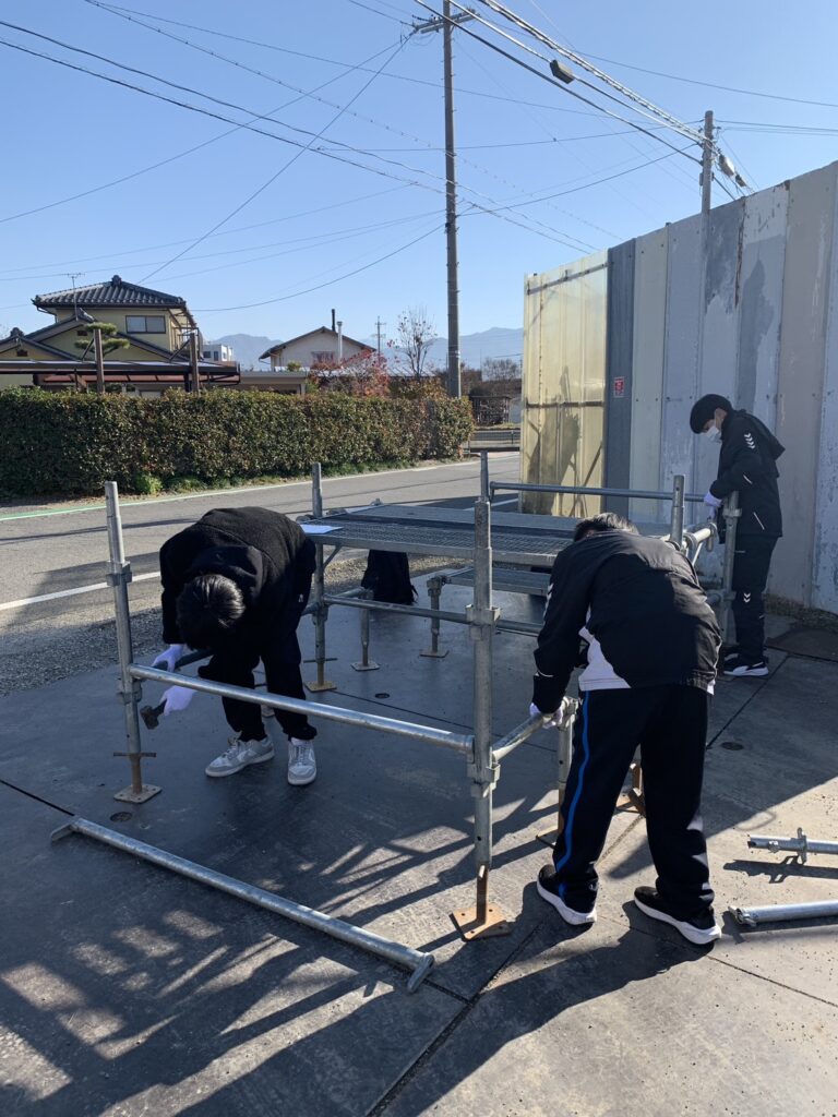 1日目:足場材を使用してテーブルとイスの組立・解体を体験! 2日目:裾花の水門へ現場見学へ行きました! 川中島建設株式会社様にご協力いただき現場内の見学をさせていただきました。 川中島建設株式会社の小林取締役様へご挨拶「よろしくお願いします!...